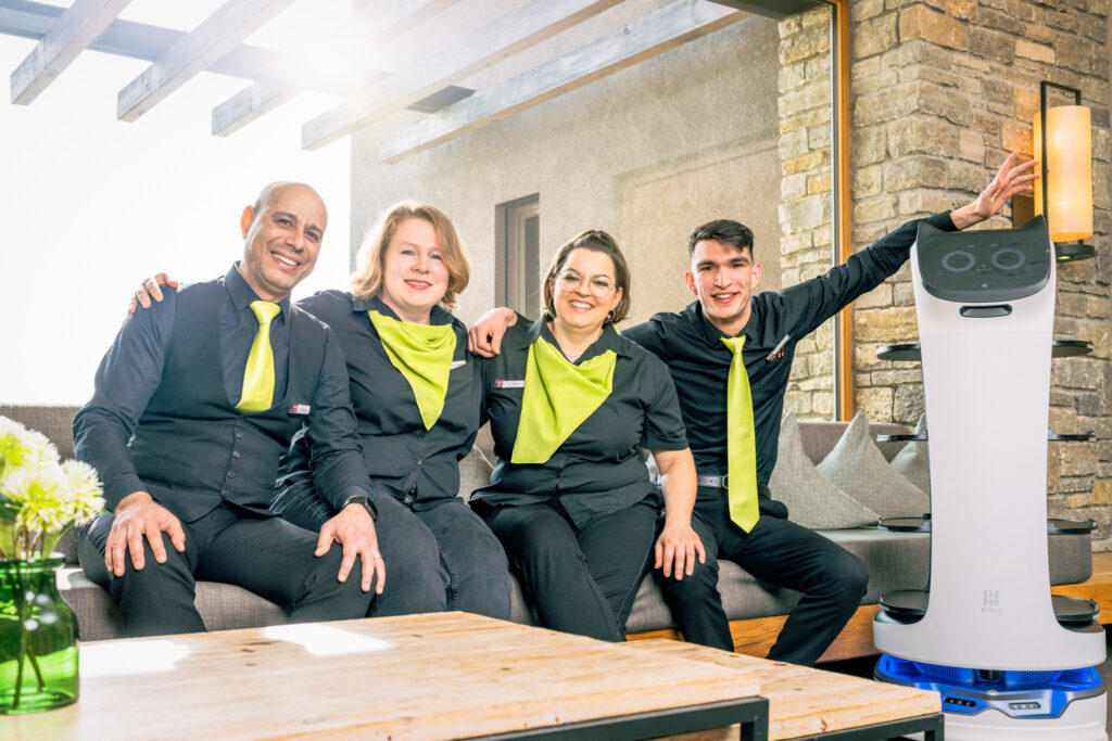 Sie sind gestandene Frauen und Männer und unsere Profis, wenn es um Tagungen, Seminare, Meetings oder Konferenzen geht. Ihr Reich ist das Refugium, denn dort sorgen sie jeden Tag dafür, dass sich unsere Gäste entspannt auf ihre Veranstaltung konzentrieren können. Das bedeutet sehr viel Organisationsarbeit – und zu Fuß muss das Team auch sehr gut sein, so an die 20.000 Schritte am Tag kommen pro Person zusammen. Und dabei machen sie sich auch noch fast unsichtbar, denn sie arbeiten sozusagen zeitversetzt immer in den Bereichen, in denen sich die Tagungs- und Veranstaltungsgäste gerade nicht befinden. Sechs Tagungs- und Veranstaltungsräume haben wir im Refugium, je nach Bestuhlung können dort 160 Menschen gleichzeitig tagen oder feiern.