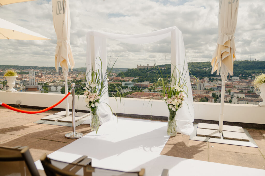 Grundgerüst für eine Hochzeit auf der Steinburg